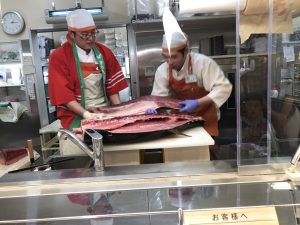 「ただいまからマグロの解体ショーはじまります!」と。何回もアナウンスがあったのでワクワクしながら鮮魚コーナーに。