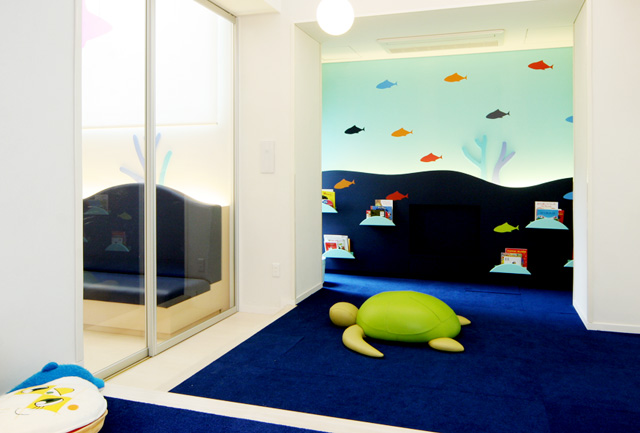• キッズコーナー待ち時間中などに、お子様が自由に遊べるキッズコーナーです。絵本もたくさん置いています。