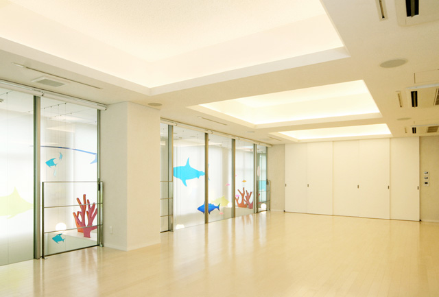 • ロビー楽しくお待ちいただけるように、水槽を作りました。中にはいろんなお魚が泳いでいます。
